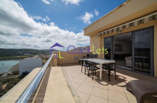Situated at the top of Xemxija Hill, this split-level modern Penthouse has an especially large open plan living/kitchen/dining room that enjoys 180 degree panoramic sea views from it's front terrace, two bedrooms (main with ensuite bathroom and back terrace).Very spacious and airy! A beautiful apartment, must see !!!