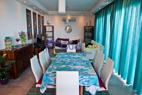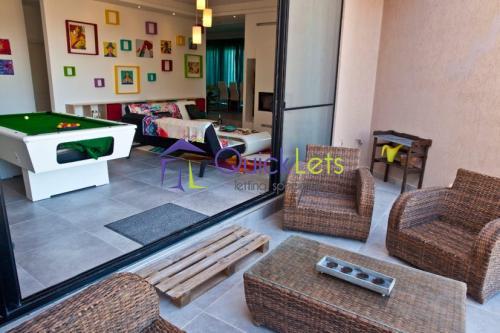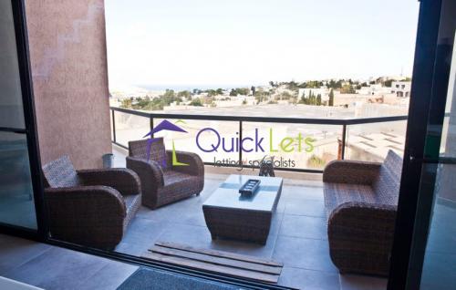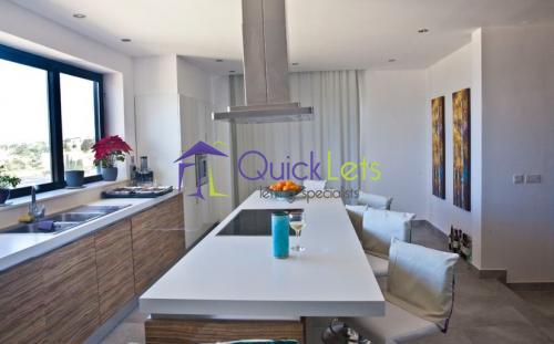 Unique large spacious modern detached penthouse including roof, enjoying 200° of breath taking views of the Northern half of the island including Comino, Gozo and Sicily on clear nights and sea views. The property is situated in a highly sought prestigious area. Property comprises of a large designer Kitchen enjoying breath-taking views. A large Dining/lounge room with a full room length veranda to enjoy the stunning sunsets and amazing views. A spacious Livingroom with a very large veranda over-looking the pool and garden area also with sea view, excellent for entertaining. Three double bedrooms: One Very large Master bedroom which includes an en-suite bathroom, walk-in wardrobe and with doors opening onto the balcony which overlook the pool, garden and sea views. The Master bedroom is situated away from the other rooms in the house making it very private. The two other double bedrooms and study are also sectioned off and share a bathroom. The room on the roof has the third bathroom, fridge, outdoor table and chairs for entertaining guests. The roof has an exceptional view which has to be seen to be appreciated. Property is very bright with amazing sunsets and is found at the end of the Cul-de-sac, with lots of available parking space. Tenants will also have access to the large pool and pool area. Property is fully equipped with air conditioning, 3D TV, dishwasher, washing machine and more. Property is extremely unique and must be seen!