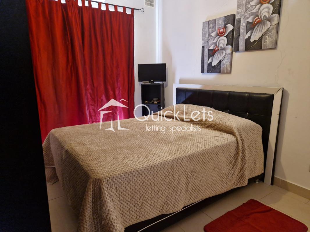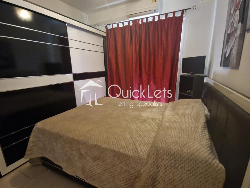 Modern one-bedroom apartment with a double bed and a private balcony.
