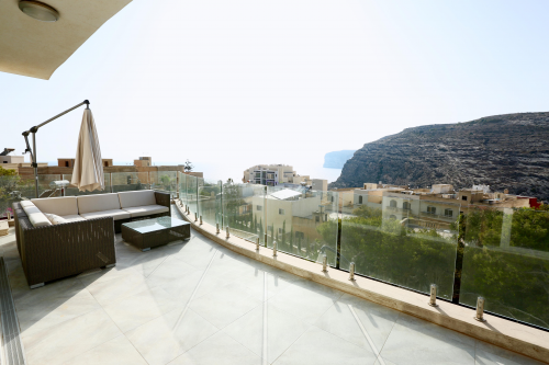 This luxurious penthouse which boasts of a 360° panorama view of Xlendi and Xlendi Bay is located in the quiet and prestigious part of Xlendi Heights Villa area, in a quiet cul-de-sac. This designer finished penthouse consists of 2 bedrooms with ensuite, a home office (which can be turned into a third bedroom), a bathroom, a guest toilet, a washroom, a huge open-plan kitchen, dining and living area as well as a massive terrace offering fantastic sea views. This penthouse can be accessed from its private entrance and also has a spacious roof garden and its own private jacuzzi overlooking the picturesque view of Xlendi and Xlendi Bay. The property is fully air-conditioned, furnished and equipped with all the comforts of the modern age.