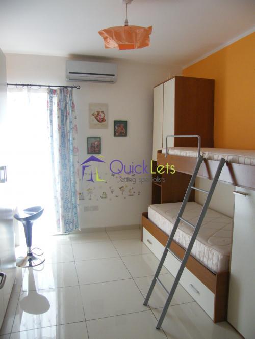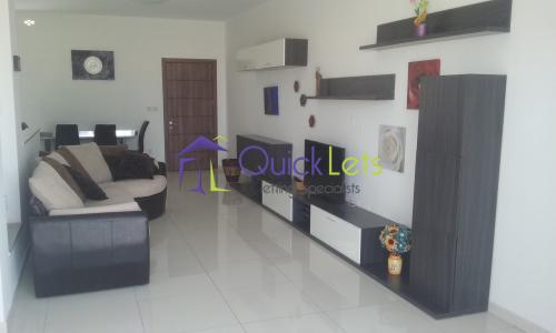 BUGIBBA - A highly finished, fully furnished modern penthouse, situated at walking distance to Bugibba square and all amenities. Layout is in the form of a good sized open plan kitchen/living/dining which leads onto a large sunny terrace, where one can enjoy beautiful sea views; two double air conditioned bedrooms (main with an en-suite), a guest bathroom, a back terrace and a washroom.