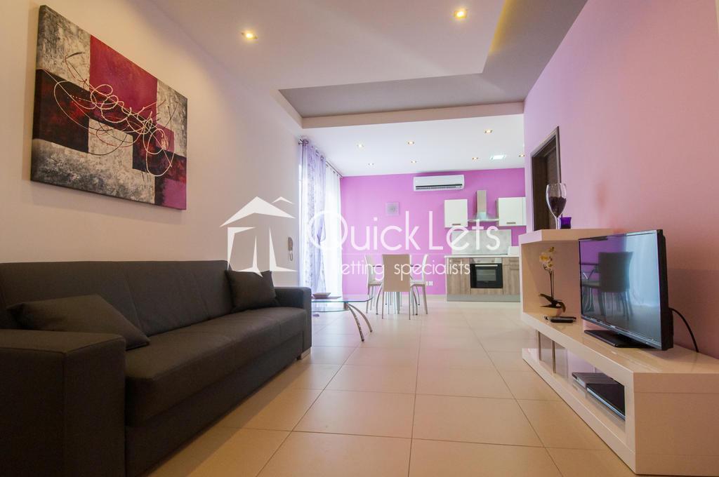 Modern furnished apartment finished to high standards in the heart of Sliema. Comprises living/kitchen/dining, two double bedrooms, the main bathroom, and a front balcony. Extras include AC, washing machine, TV, and more. A must-see!