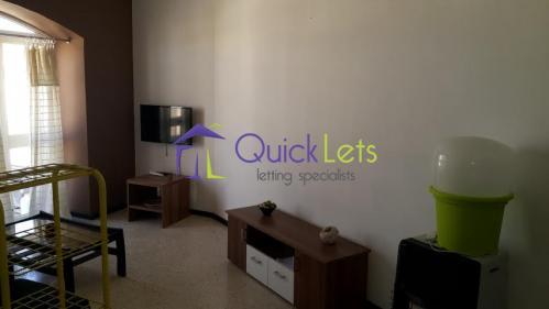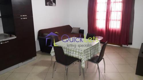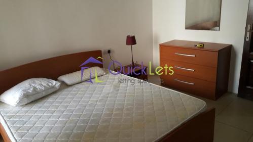 GZIRA - Spacious fully furnished and equipped, 1st floor flat served with lift and air-conditioning. Entrance hall, open plan fitted kitchen/lounge/dining leading to balcony, double bedroom, shower room and good sized private yard.