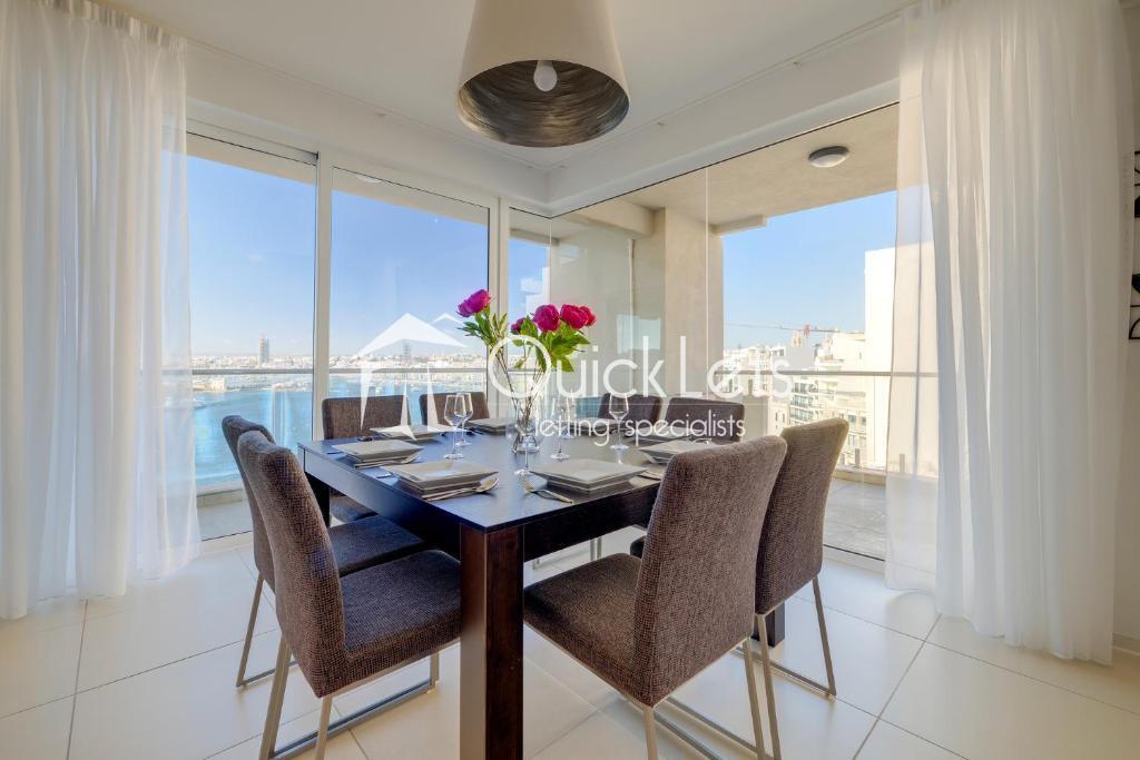 SLIEMA - This stunning modern 3-bedroom, 3-bathroom seafront apartment is located in the prime area of Tigné, offering a prestigious address and breathtaking views. The open-plan living, dining, and kitchen area is impeccably designed, featuring contemporary finishes and fully equipped with state-of-the-art appliances for effortless living. The highlight is the expansive front terrace, boasting panoramic views of the open sea, the vibrant town, and the serene valley, perfect for relaxing or entertaining. Each bedroom is spacious and well-appointed, with two featuring en-suite bathrooms and the third served by a luxurious main bathroom. A private back terrace provides additional outdoor space for added versatility. With floor-to-ceiling windows flooding the interior with natural light, this apartment seamlessly blends elegance with modern convenience. Ideally situated in the heart of Tigné, this residence offers unparalleled access to fine dining, shopping, and entertainment, making it the epitome of luxury coastal living.
