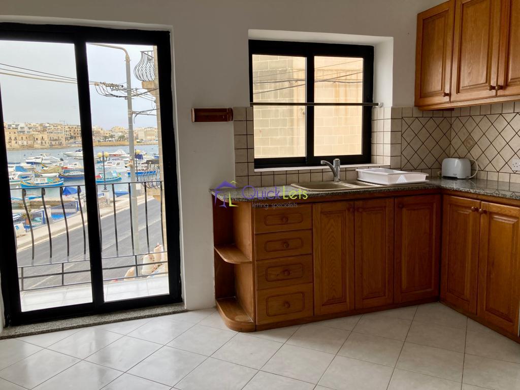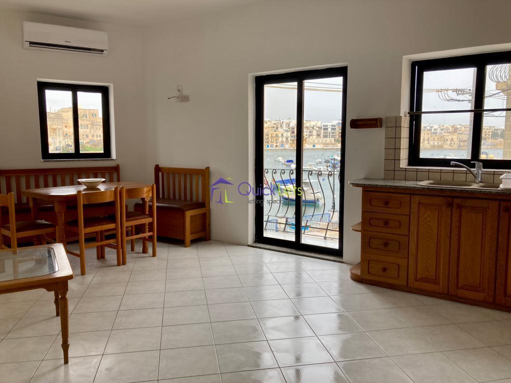 BIRZEBBUGA - A cosy two bedroom seafront apartment. Layout comprises of an open plan kitchen/dining/living area, leading onto a lovely balcony enjoying a stunning sea-views. One double bedroom with wardrobe and the spare bedroom with a single bed , wardrobe and desk and one bathroom with shower.