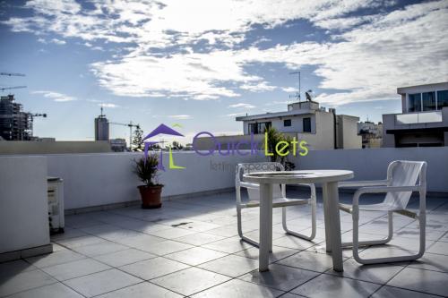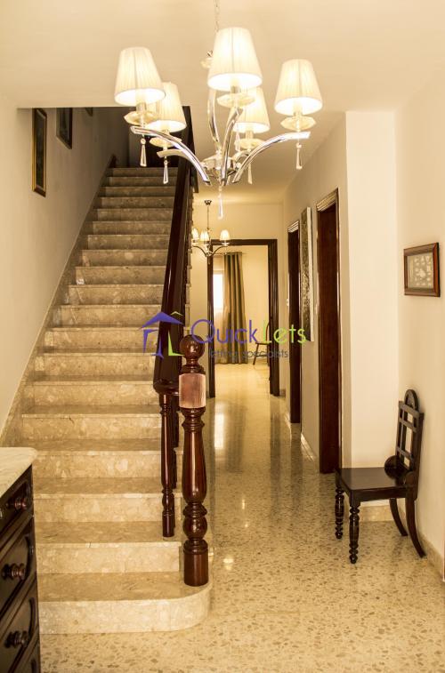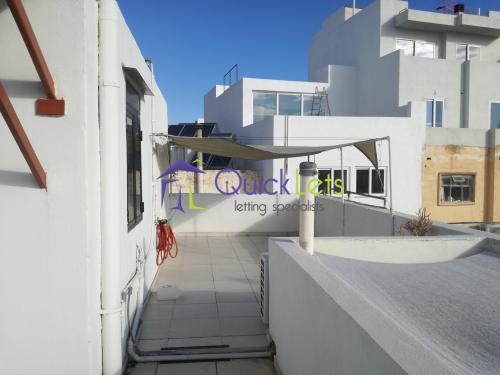 SWIEQI - A large 4 bedroom duplex maisonette at first and second floor level, with own roof terrace (effectively an elevated terraced house). The first floor consists of hallway, sitting room, kitchen / dining room, one of the bedrooms, utility room and extra toilet. The second floor provides three bedrooms and bathroom. The roof terrace is served by a washroom / kitchenette, making it a highly usable and pleasant recreation area. Airconditioned throughout. Very convenient location with all services at hand and only a short walk to St. Julian's.
