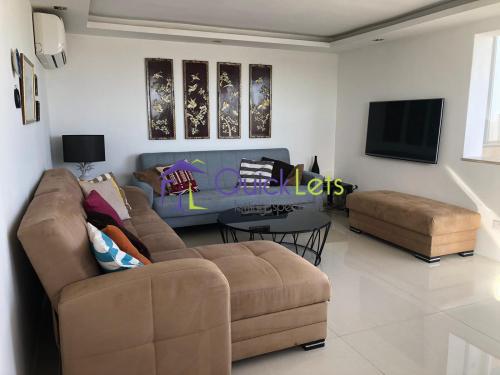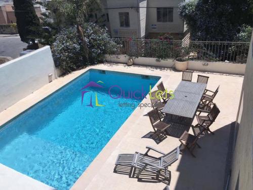 KAPPARA - One bedroom penthouse in a very great location with beautiful views of Yacht Marina and Valletta. The penthouse contains one bedroom and one bathroom. One can also enjoy a nice communal swimming pool/outdoor furniture/bbq in the spacious garden. A monthly extra charge of €100 covers water and gas consumption, WiFi, cable tv, pool maintenance and garden electricity. Electricity in the property is charged by consumption, which is around €40 monthly.