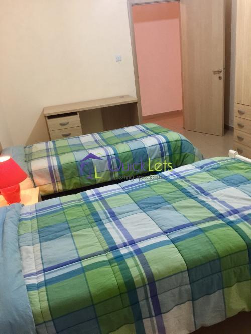 MSIDA - Three bedroom, two Bathroom, first-floor modern and fully furnished Apartment, centrally located near The Malta University and close to all amenities. Layout consist of entrance hall, combined kitchen - dining - living area, main bedroom with ensuite and air-conditioned, one bedroom with two single beds, one bedroom with one single bed and balcony, main bathroom, balcony overlooking the street and a small courtyard.