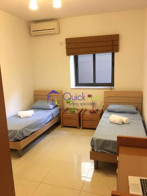 ST. JULIANS - a modern and spacious three double bedroom apartment situated in the heart of St Julians close to all amenities. This lovely property comprises of an open plan/kitchen/living and dining room, 3 double bedroom with single beds (ideal for sharing), a main bathroom and an ensuit bathroom. The apartment is fully air conditioned and fully equipped, wifi and IPTV are included. Pets are wellcome!