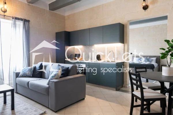VALLETTA | A newly refurbished development (finished June 2022) located in the heart of Valletta offers an excellent opportunity to live comfortably in the city. The property layout consists of an open plan kitchen - a living area with traditional high ceilings and a balcony and the main bedroom with an en-suite shower. The property is offered fully equipped and air-conditioned in the main bedroom. Every tenant in the development will have access to the landscaped chill-out area on the roof terrace which offers panoramic views of Valletta and the Mediterranean Sea.