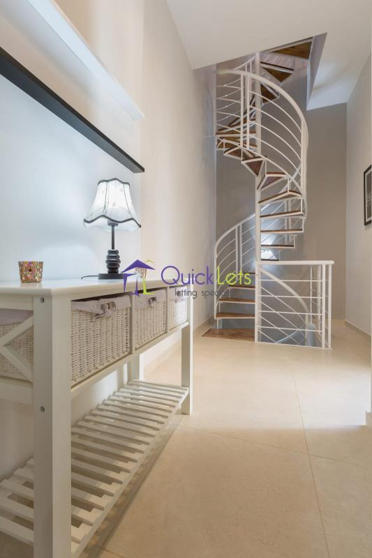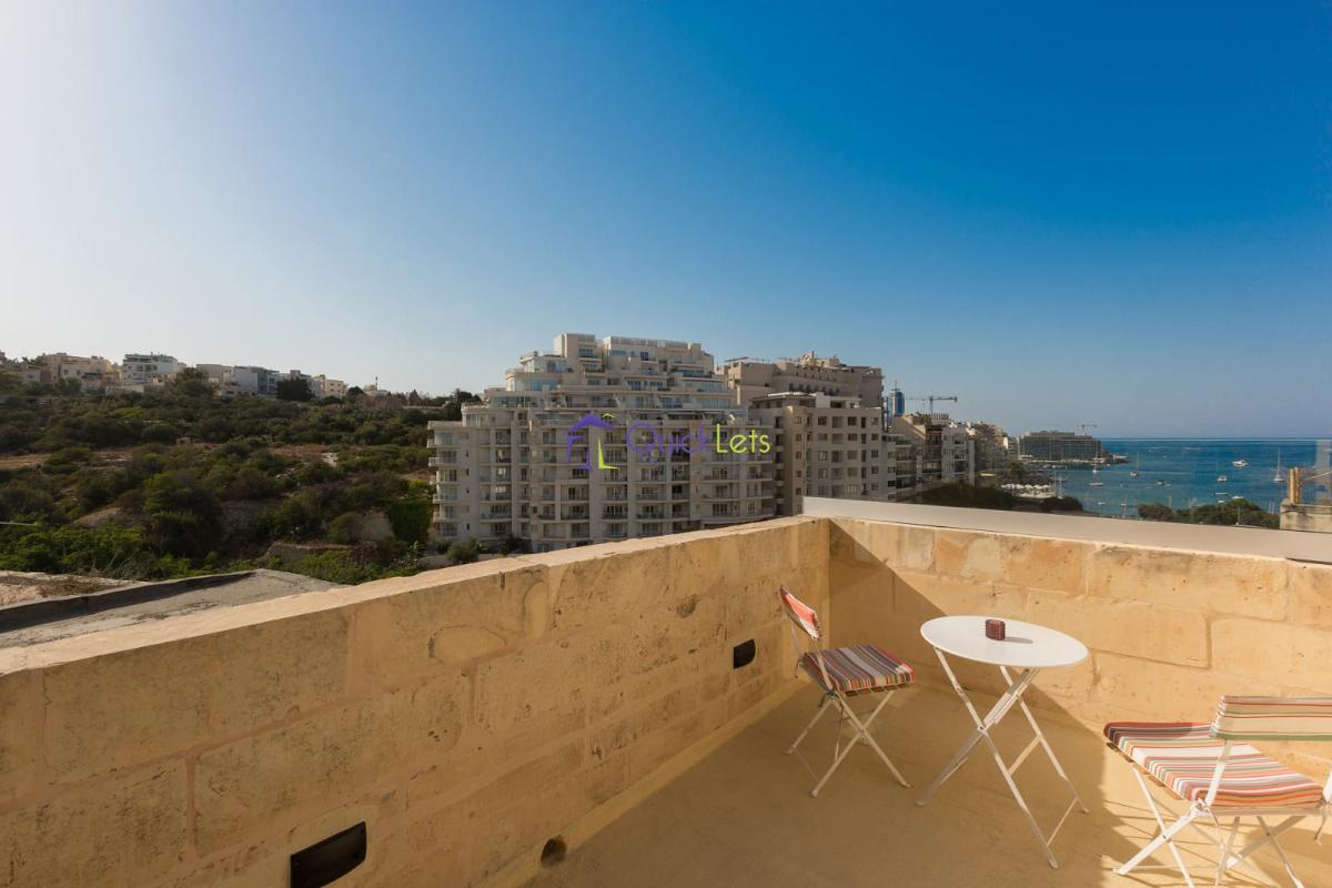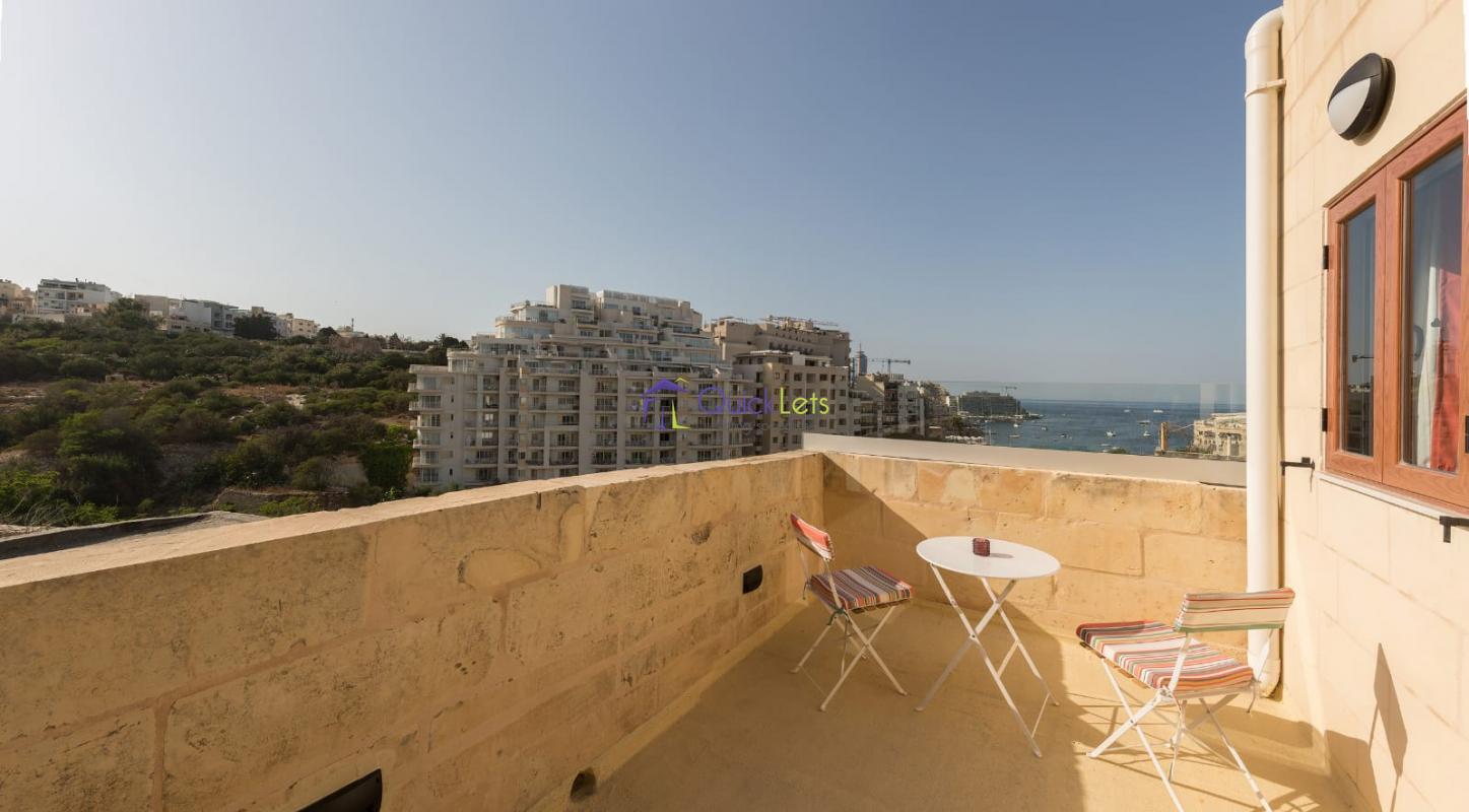 ST. JULIAN'S | Newly renovated Townhouse just of Balluta Bay. Enjoying a great location in a quaint alley. The property is set over three floors. Upon entering at ground level is a comfortable living area, going up a winding staircase to the first floor, having a front balcony and main bedroom with en-suite. Continuing to top floor where one will find a fully equipped kitchen/dining and a spacious terrace to enjoy with stunning views.