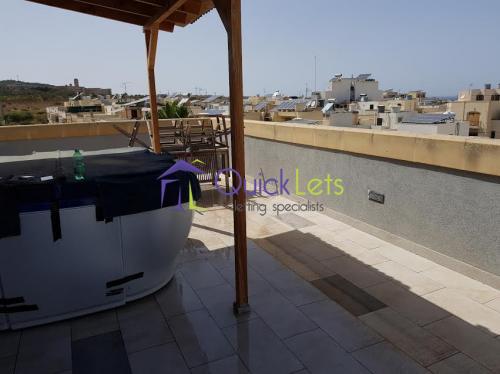 PEMBROKE - A lovely and modern two bedroom penthouse situated in a very quiet and residential area in Pembroke. The property comprises an open plan kitchen and living and dining area leading out onto a very large terrace with a jacuzzi being its primary feature, guest bathroom, master double bedroom with a shower en-suite and a guest single bedroom.