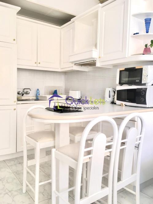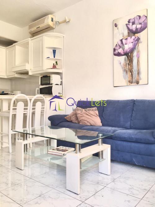 This apartment consists of a kitchen/living/dining room, together with a master bedroom , small single bedroom and bathroom. Master bedroom and kitchen/ living are air conditioned , It includes also a washing machine and a TV