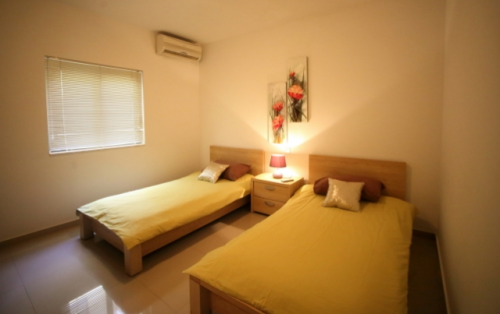 This two-double-bedroom first-floor apartment consists of a generous living area, with a fitted kitchen and dining, bathroom also has a shower bath, and guest toilet/washroom. This Apartment is fully air-conditioned and is also connected to a central vacuum system.