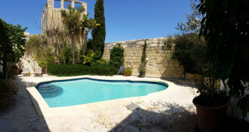 The residence has been modernized to high finish but retains a wealth of original features with beautiful hand crafted high rooms built in traditional Maltese architecture, mill rooms, antique (now unused) Maltese traditional wood stove built in a rambling style. The property enjoys lots of natural light throughout the day from its South facing facade, a beautiful internal courtyard and lush and very private back garden with a traditional bell shaped pool reflecting the heritage of the area, sun deck areas and elevated outdoor entertaining and dining area overlooking the pool and the Naxxar, Iklin heights. The property has four bedrooms, all with private ensuite with two bedrooms on the front wing overlooking Lija village, one private bedroom on a separate wing overlooking the rear garden and one ground floor bedroom overlooking the central courtyard for use by elderly or physically impaired guests or family members.