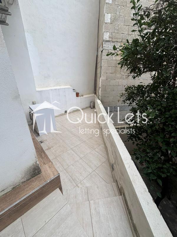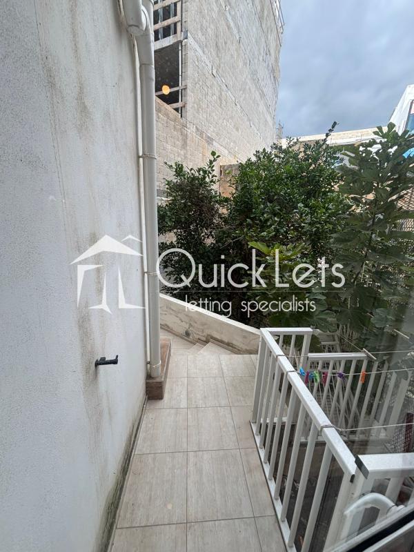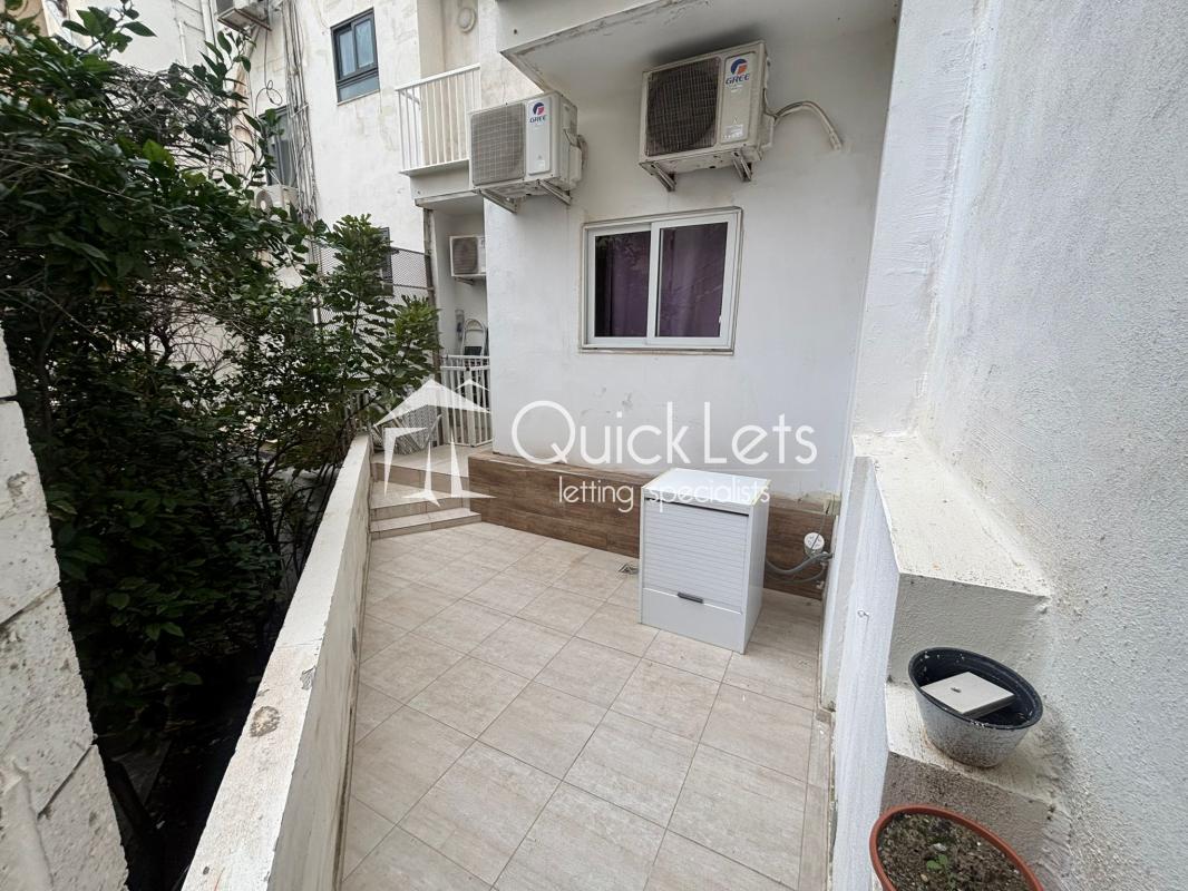 This bright and spacious 95sqm property features an open-plan kitchen and living area, a front balcony with sea view, a double bedroom, and an additional bedroom with three single beds. The apartment also includes 1 bathroom and a small back yard.