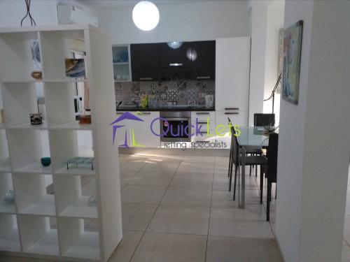 Modern and well equipped Apartment in the picturesque bay of Balluta, St. Julians, comprising of Hall, open plan kitchen/living/dining leading to a back terrace, 2 bedrooms, shower room, guest toilet, served with lift, front balcony enjoying sea views and valley views. Optional 2 car garage for €150 monthly