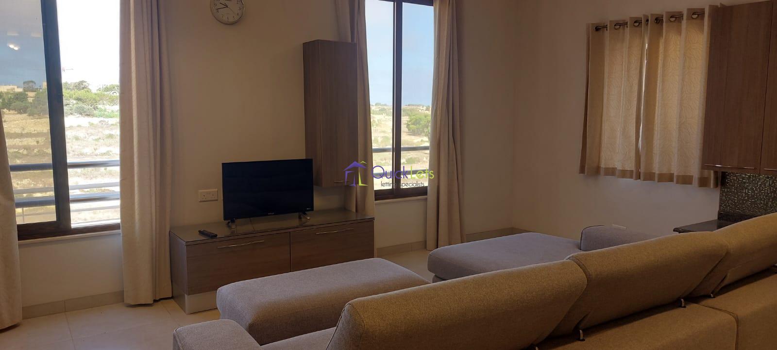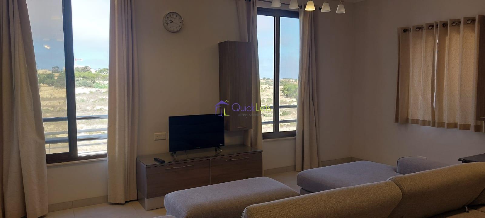 GHARB - A modern apartment situated in the beautiful village of Gharb, a quiet area surrounded by green areas. The property comprises a spacious open plan with a fully equipped kitchen and living area with a front balcony overlooking beautiful views of the fields. It has a main double bedroom with an en suite, a spare bedroom with two single beds and a main bathroom.