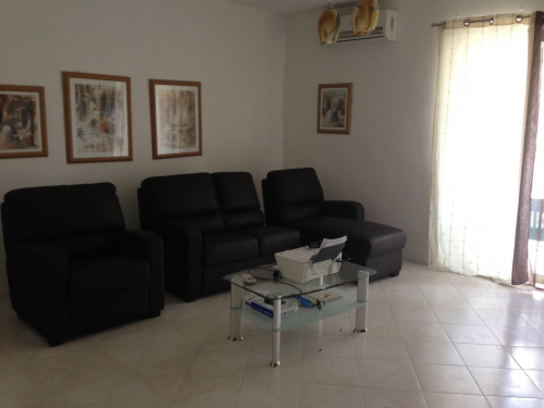 Large three bedroom apartment with own entrance and use of roof. Also complimenting this apartment is a front balcony with side sea views and a large back terrace. The floor plan of this property encompasses a bathroom and a spare toilet, a large kitchen, dining, and living area along with a master bedroom with A/C.