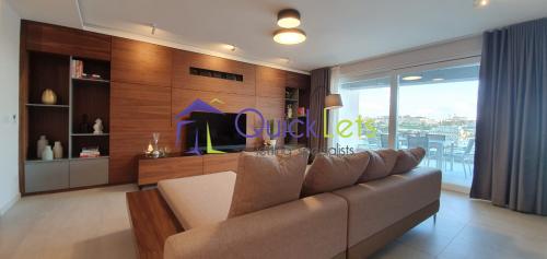 SLIEMA- A fully furnished luxurious two bedroom ninth floor apartment located in Sliema close to bus stops and all the amenities that you may need on a daily basis. The property comprises of a fully equipped kitchen/living/dining. Inside the apartment, one can find two bedrooms, main bedroom with ensuite and a main bathroom. Property comes fully equipped with full AC throughout, washing machine, LCD TV, lift, and all the necessary appliances and utensils that one would need. This property has a balcony with sea views.