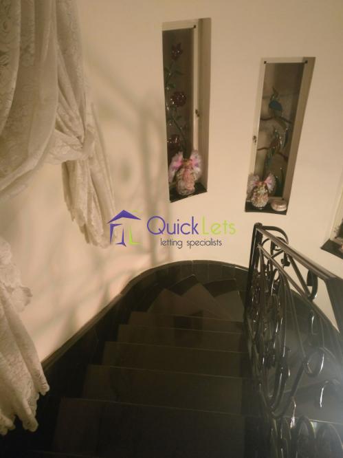 A beautiful granite staircase leads to the second floor which comprises two spacious double bedrooms, one of which has a balcony overlooking the town and the other having a terrace overlooking a garden, and the main bathroom. Going further up the stairs we find the third floor which is used as a washroom and to access the large roof. The washroom has two doors each leading to a different part of the roof, on leading to the front part of the roof and the other to the back. From the front part of the roof, one can enjoy wonderful town view and a lovely garden view from the back one.