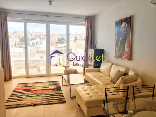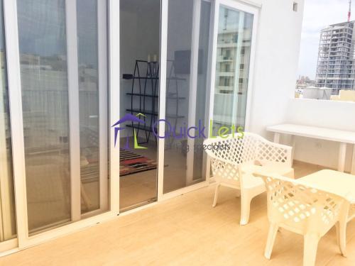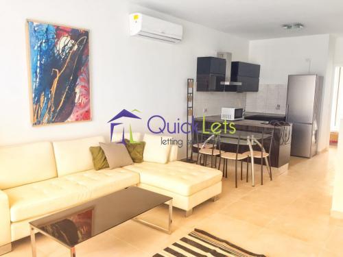 GZIRA - Two bedroom Apartment, fully equipped and air-conditioned which comprises of an open plan kitchen/living, one double bedroom with private back balcony, a studio that can be easily converted into a single bedroom with private back balcony and bathroom with a shower.