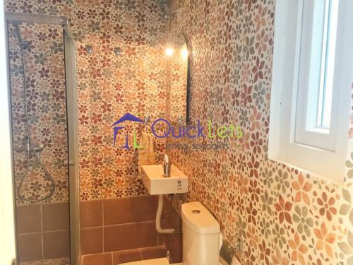 Kitchens form part of an open plan kitchen / living / dining area with an amazing front balcony perfect for entertaining your guests. The living room is equipped with a leather sofa and coffee table, console cabinet with LCD TV also served with a private stair case leading to the private roof terrace of about 90sqm. Kitchen is equipped with Candy appliances, AA+ fridge freezer, oven and hob, microwave and kettle, fully stocked with glassware, cutlery and crockery.