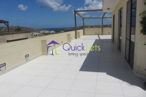 GHAJNSIELEM Gozo: A newly highly furnished penthouse with the use of a lift situated in a quiet area in Ghajnsielem and near all main amenities. The layout consists of a spacious open-plan kitchen/living/dining area leading to a massive all-around terrace with distant sea views, three bedrooms, and a main bathroom.