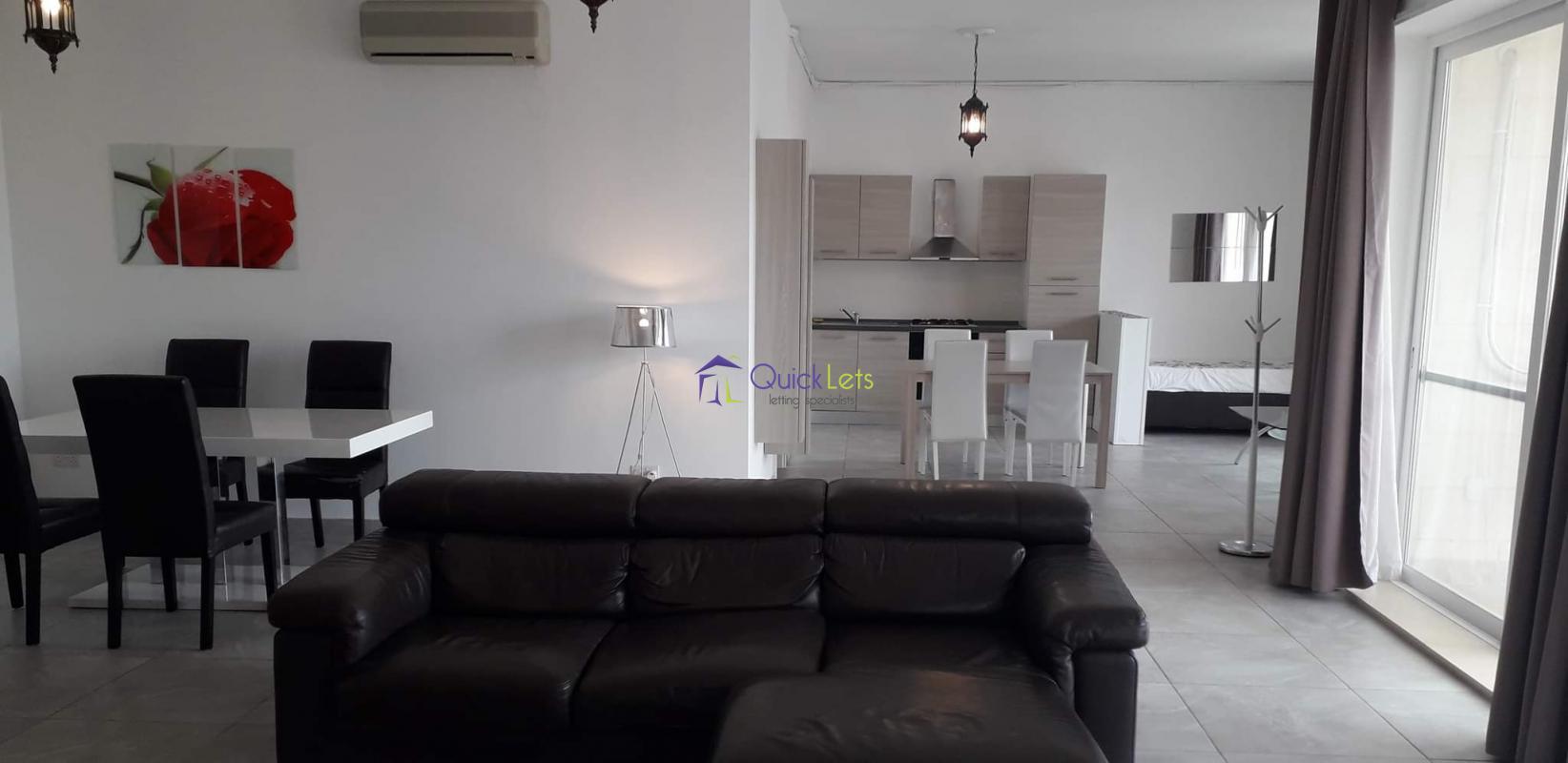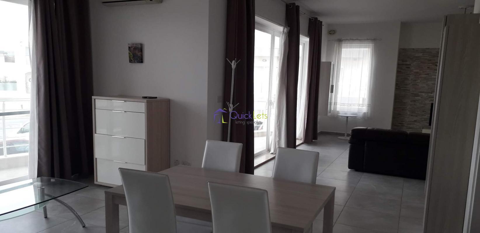 San Pawl Tat-Targa - Here we have a very naturally bright newly refurbished maisonette as it has 3 well-sized balconies facing a quiet street. The layout is very spacious open plan with modern furniture and a fully equipped kitchen. An additional feature it has an electric fireplace.