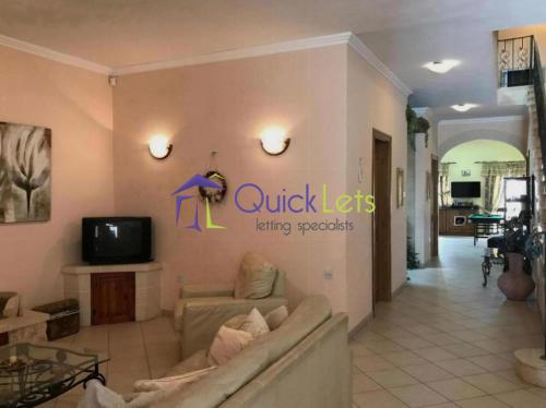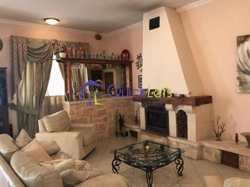 Zejtun : Situated in a quiet area of Zejtun. This beautifully finished Terraced house is being offered for rent. At a Larger than usual foot print this terraced house has over two hundred and fifty internal space and full use of roof as an entertainment area and a back yard. Comprising of three double bedrooms and Large entertainment area. The ground floor has welcoming living area a study a kitchen living area and a back yard. The Staircase leads onto the first floor hosting all three bedrooms and a second staircase on the roof area. The roof has a second full size kitchen and ample entertainment rood area including back views over fields. It has A/Cs and the solat water heater.