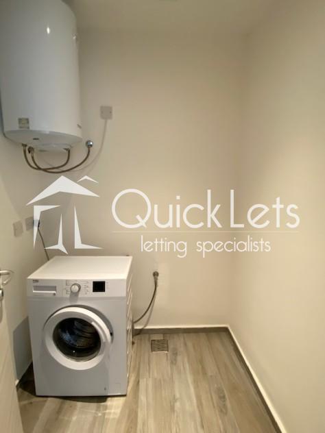 Fully equipped with modern appliances, including a washing machine, dishwasher, electric cooker, and oven.