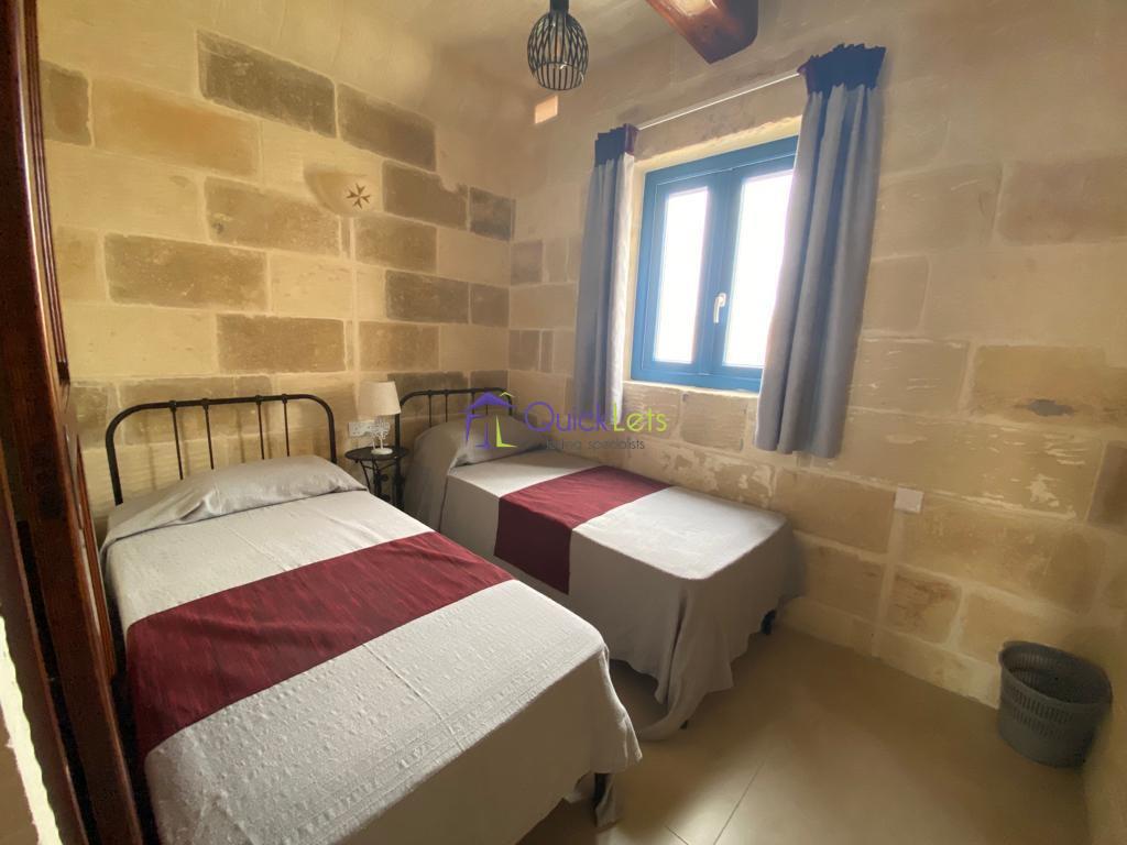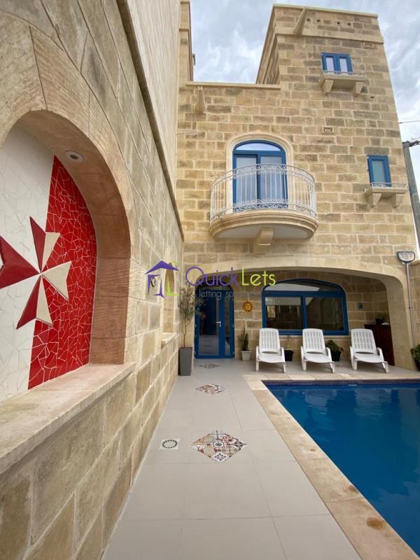 Sannat, Gozo Spacious farmhouse with a beautiful views on cliffs. Walking distance to Hotel Ta-Sang. Has a pool, 3 big bedrooms, 1 bedroom designed as a study. Available for 12-24 months let in the winter and all summer. Suitable for big family .