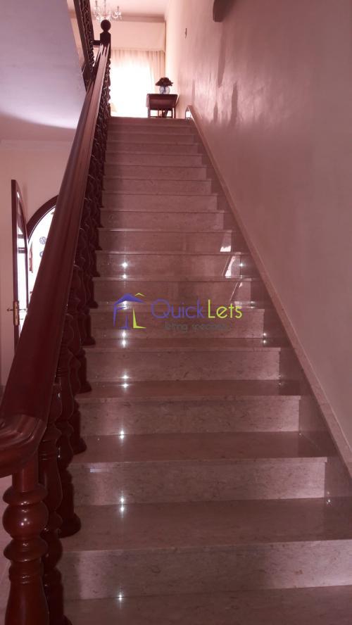 Fully furnished - entrance at ground floor, then on first floor one finds an open plan kitchen/living/dining, 2 bathrooms, 3 bedrooms (1 with ensuite bathroom), own private roof from both sides of the house, also has a wash room and enjoys beautiful skylight