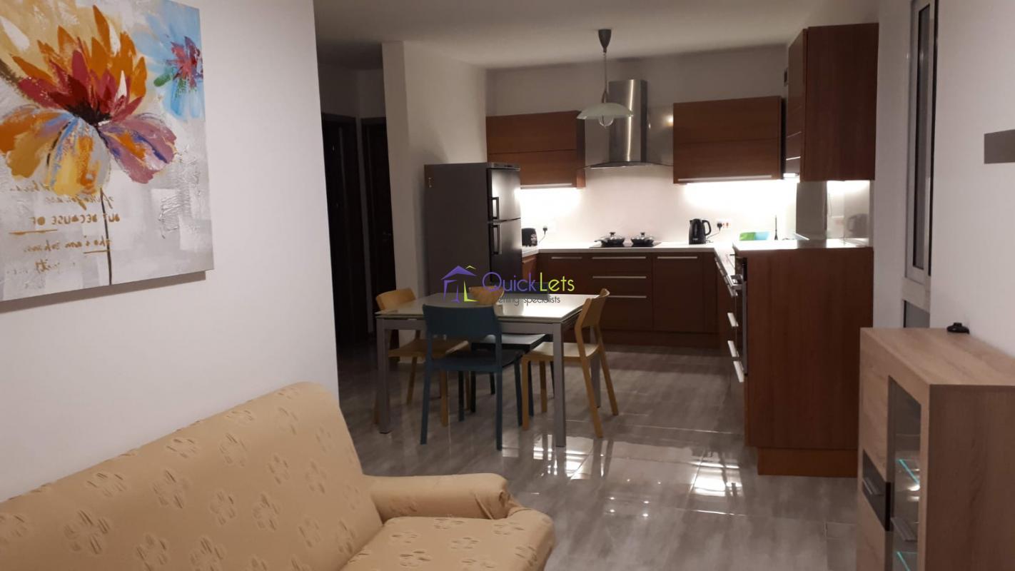 SAN GWANN - A highly finished and furnished Apartment situated on the first floor and served with lift. It comprises a spacious open-plan kitchen equipped with top-quality appliances (even a dishwasher), which is connected to the dining and sitting area. There are two large bedrooms, one having a double bed and the other two singles, both having new matrasses, sheets and linen and of course completed with large wardrobes and A/C. Furthermore, you will find a bathroom and a separate utility room with a washing machine. The Apartment is perfectly located only 700m from Mater Dei Hospital, very near the University, and at very short distance from Swieqi, St Julians, Gzira and Sliema. A supermarket, small shops, various takeaways and of course bus stops are within walking distance. Ideal for a working couple who are looking for a spacious and very comfortable new home.