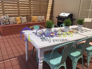 The third level of the house is a cozy living room area with access to a large decked outdoor space. This area is perfect for someone's social activity; the living room area has a comfy sofa (which may be used as another sleeping space), and a widescreen smart TV. This area also has its own bathroom with a shower. This room may also be used as a second bedroom.