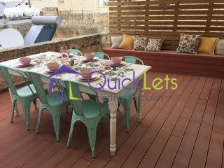 Through this room one has access to a large outdoor terrace once again overlooking the beautiful Gharghur alley and also glimpsing the back of the famous Gharghur church. This area is fully equipped with a table and chairs to comfortably seat six, a new gas BBQ with utensils, privacy from neighbors with wooden trellising on either side and a fixed canopy providing shade and festoon lighting.