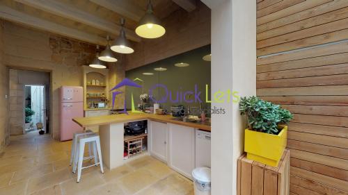 GHARGHUR - Upon entrance is a large greeting room with a wall-to-wall Victorian library and a cozy armchair set beside the large internal yard windows. Further down the hallway is a desk area flooded by natural light seeping through from the internal courtyard. The large kitchen is fully equipped with all cooking utensils needed including a large 6 burner stove & oven, fridge, freezer, kettle, toaster & dishwasher.