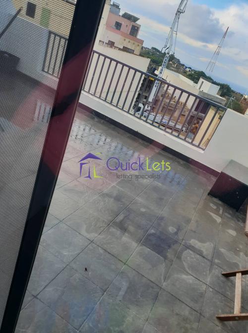 ZURRIEQ - penthouse in a block of 3, upon entering one finds open kitchen/living/dining, full of natural light , main bedroom with en-suite facilities, back terrace, and anoither bedroom with two single beds.