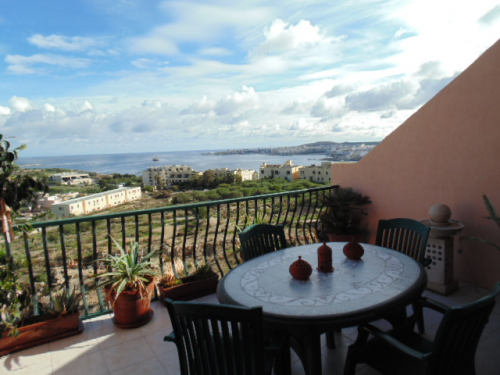 Located on the tip of a quite hill in Xemxija is this very spacious 3 doubled bedroom apartment. Having a larger than normal terrace complimented by insane views and no noise but birds whistling and water running in the distance. Renting this apartment might keep you away from work. the terrace is amazing. Great place if you work from home!
