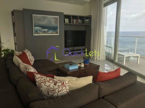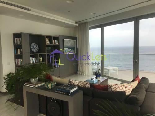 Property layout comprises of a welcoming entrance hall, leading to the open plan kitchen, dining and living area which is very spacious and extremely well lit due to it being a corner apartment. A large front terrace complete with outdoor furniture is found and enjoys extensive sea views alongside picturesque views of the Valletta and the harbor. Amazing sunrises can also be enjoyed from one of the apartments three terraces. Apart from the large one at the front, there is a smaller balcony near the kitchen and another terrace leading off from the bedrooms. Further into the property we find the bedrooms, one of which has currently been turned into another TV room complete with sofa. There is another guest double bedroom, a main bathroom complete with an above ground bathtub. The main double bedroom comes complete with a walk in wardrobe, and en suite bathroom with shower. All the bedrooms enjoy uninterrupted sea views and the whole property is flooded with natural light.