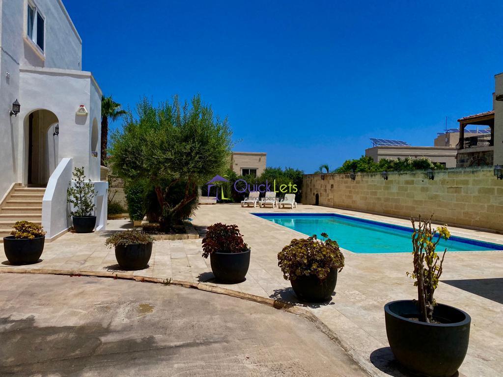 MADLIENA - Located in the prestigious town of Madliena, endowed with magnificent views of the northern bays of the island and situated at a high elevation, is this corner well-furnished semi-detached VILLA. This extremely well-kept, bright, and spacious property comprises a fully equipped kitchen with breakfast area, reception area, formal and informal dining room, a beautiful wooden conservatory leading into a large pool area with a fully equipped outdoor kitchen, BBQ, and lounge area, shower room, and toilets. Accommodation in the form of 3 bedrooms (2 double and 1 single) - main with walk-in wardrobe and en-suite shower and bath, bathroom, guest toilet, storeroom, and washroom. Also complementing this property is an underlying 2 bedroom flat-let with toilet and sitting and dining area with own entrance and a 2-car garage. Includes air-conditioning throughout, alarm, irrigation system, and much more.