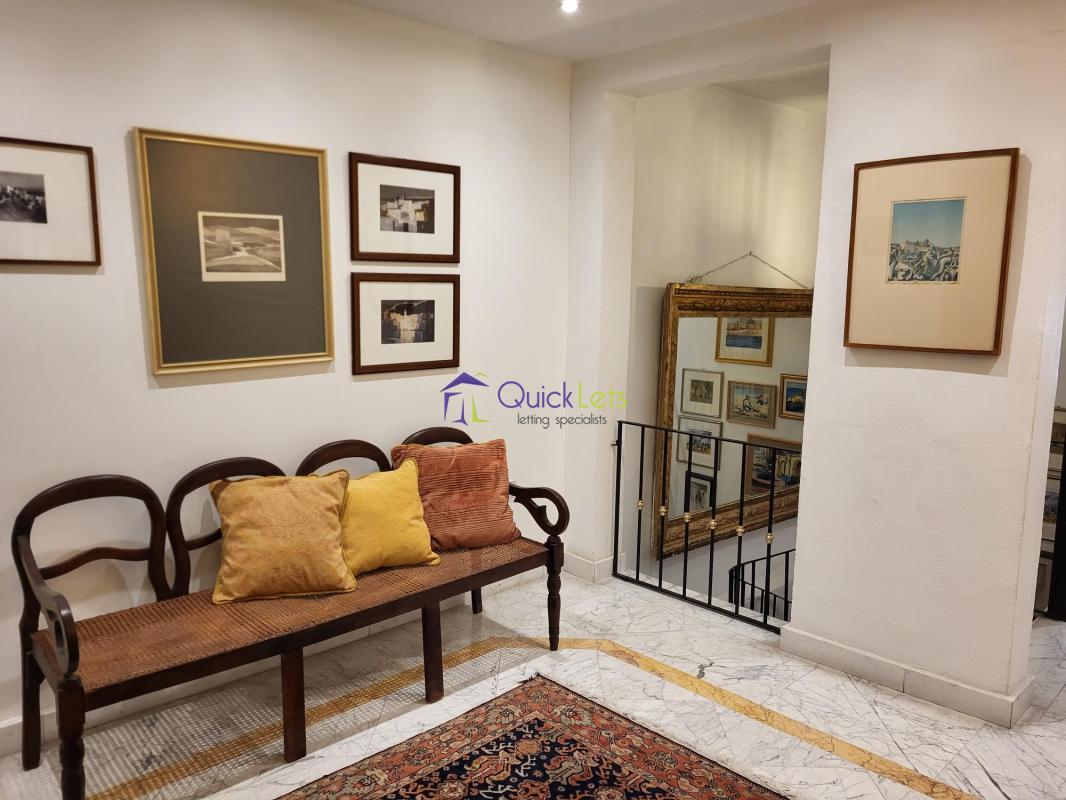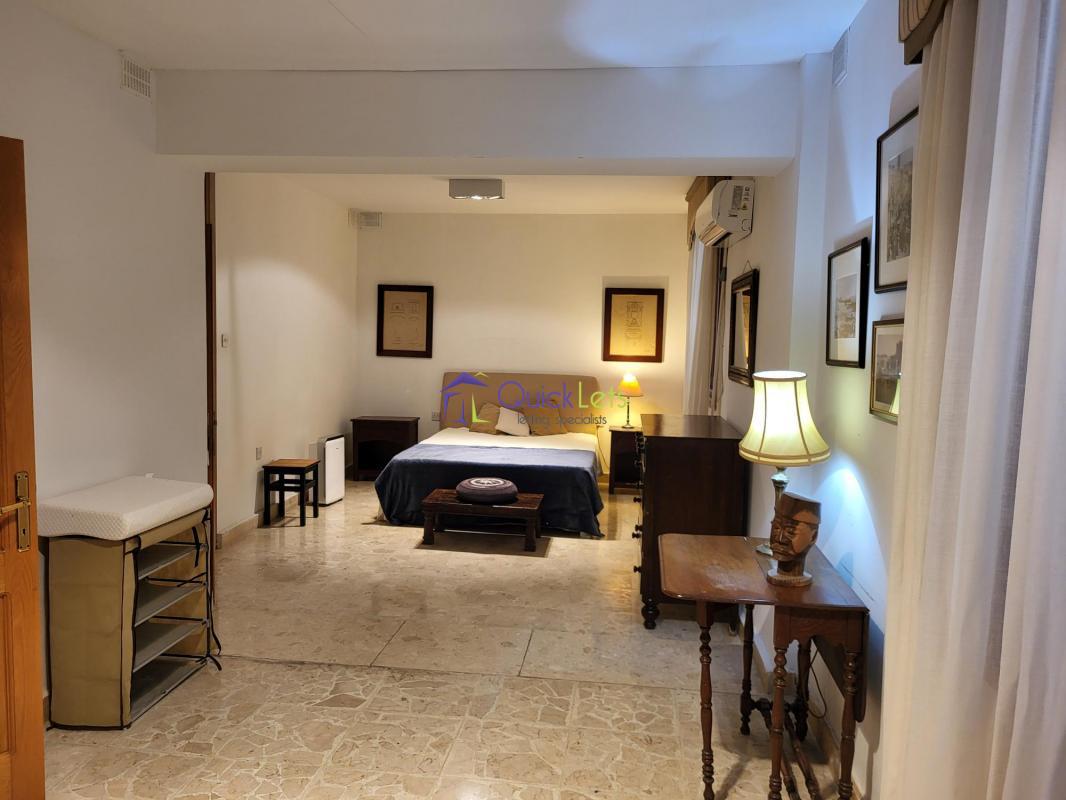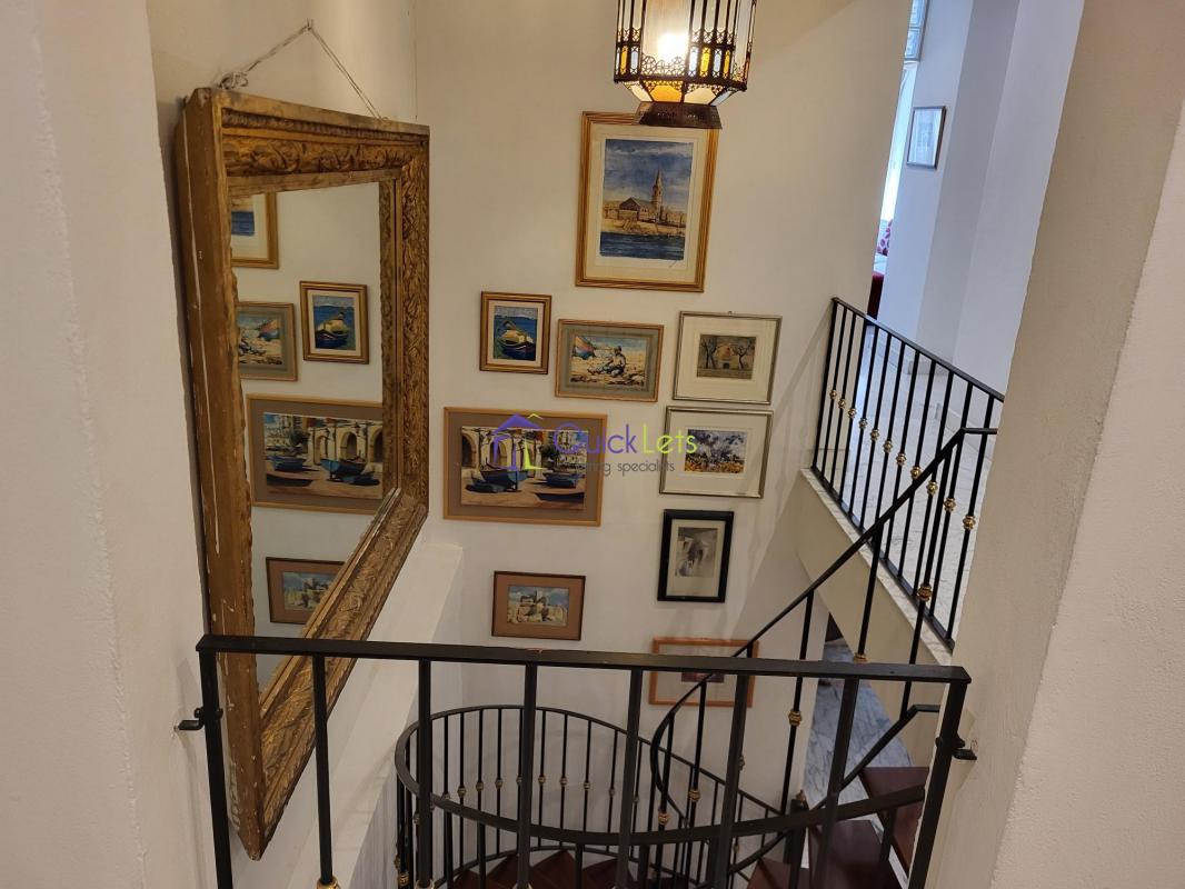 On entering from spinola bay promenade, you are lead onto a large foyer and living room perfect for welcoming guests. Moving on to the first floor of this amazing property we find a large living area furnished with an artistic touch. The living room has a stylish fireplace and two amazing balconies overlooking the bay. Separated by an internal yard with a fountain, we find a large and charming dining room. After a spacious and bright corridor, we find a homely kitchen fully equipped with all the comfort such as induction cooker, dishwasher and kitchen and dining ware. On the same level, there is the main bedroom with a private and cosy living room and an ensuite bathroom and another large bedroom.