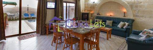 Xaghra Gozo - Luxury House of Character that really stands out, owners spared no expense and have a keen eye for detail. This is a fully airconditioned farmhouse, is located in Xaghra, and enjoys spectacular country and sea views. The first floor comprises of a main bedroom en-suite with bathroom, a spare shower room, a fully equipped kitchen/dining/sitting room with cable T.V. and an electric fireplace, a washing machine, a safe deposit box, iron, and ironing board as well as a barbeque area. Accessed through a marble staircase, the first floor comprises a main bedroom and a twin bedroom, both en suite with shower room or bathroom. One of the bedrooms has a spacious terrace overlooking spectacular country views. All rooms are equipped with ceiling fans and insect screens.