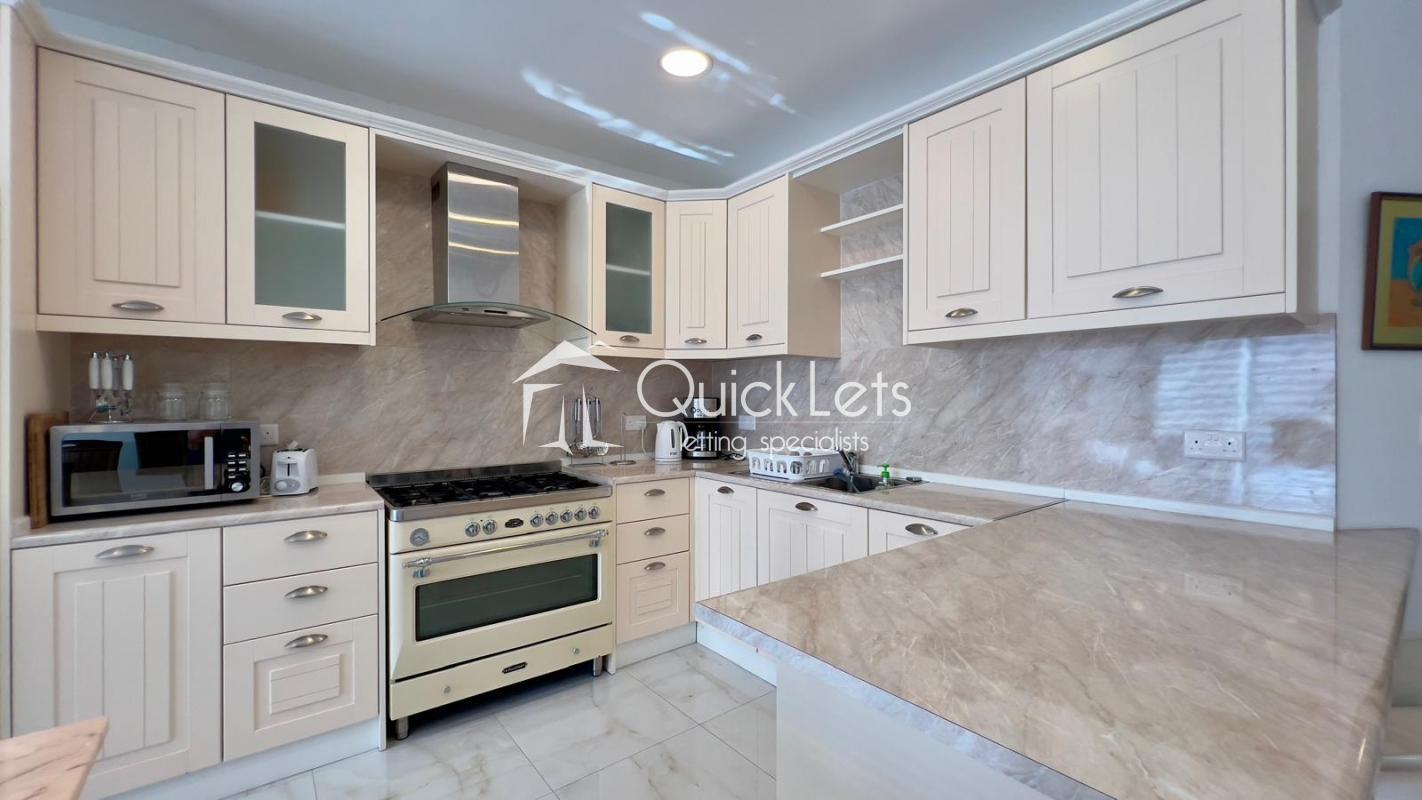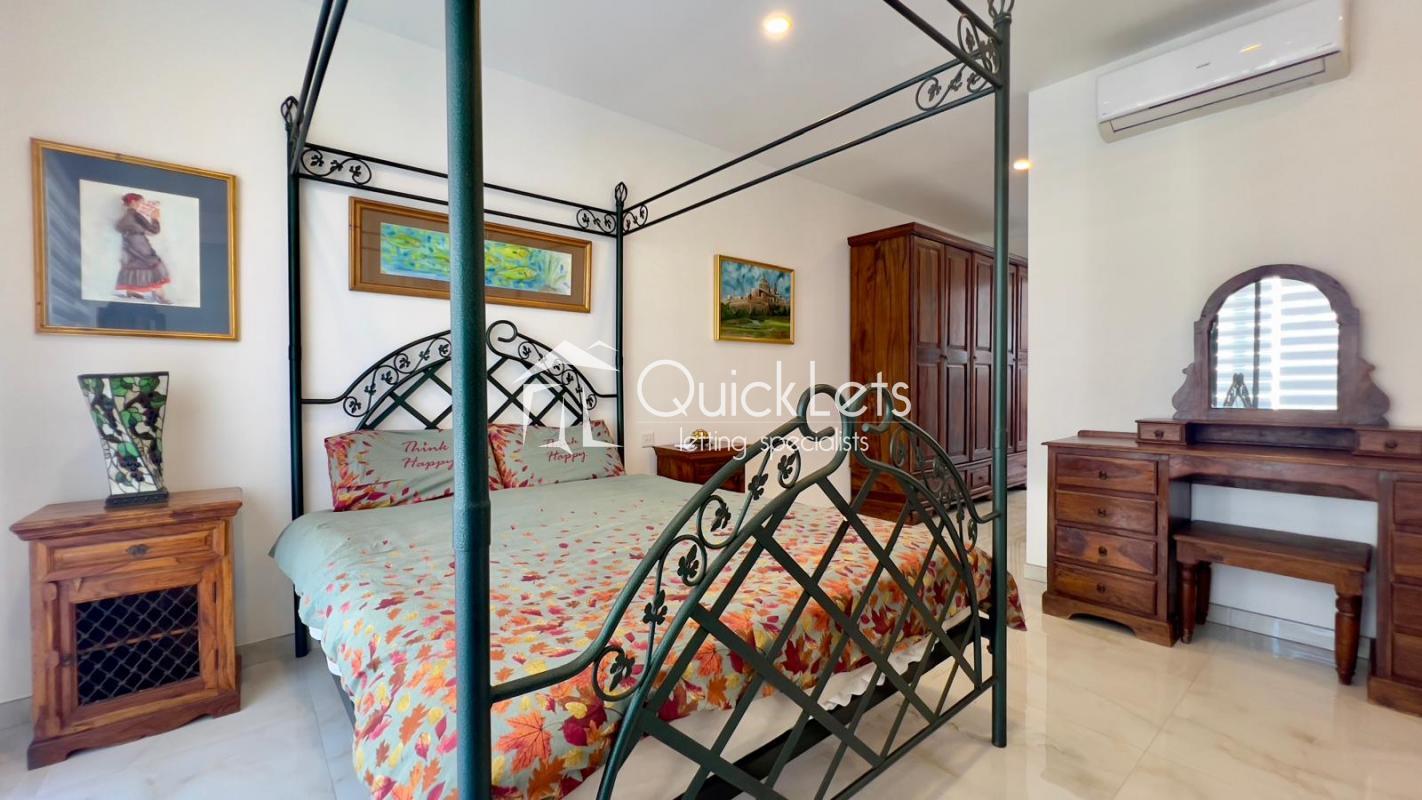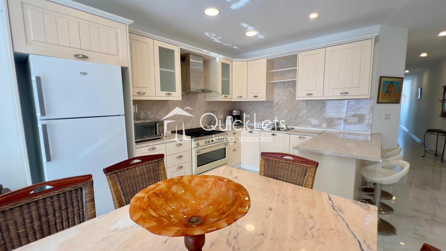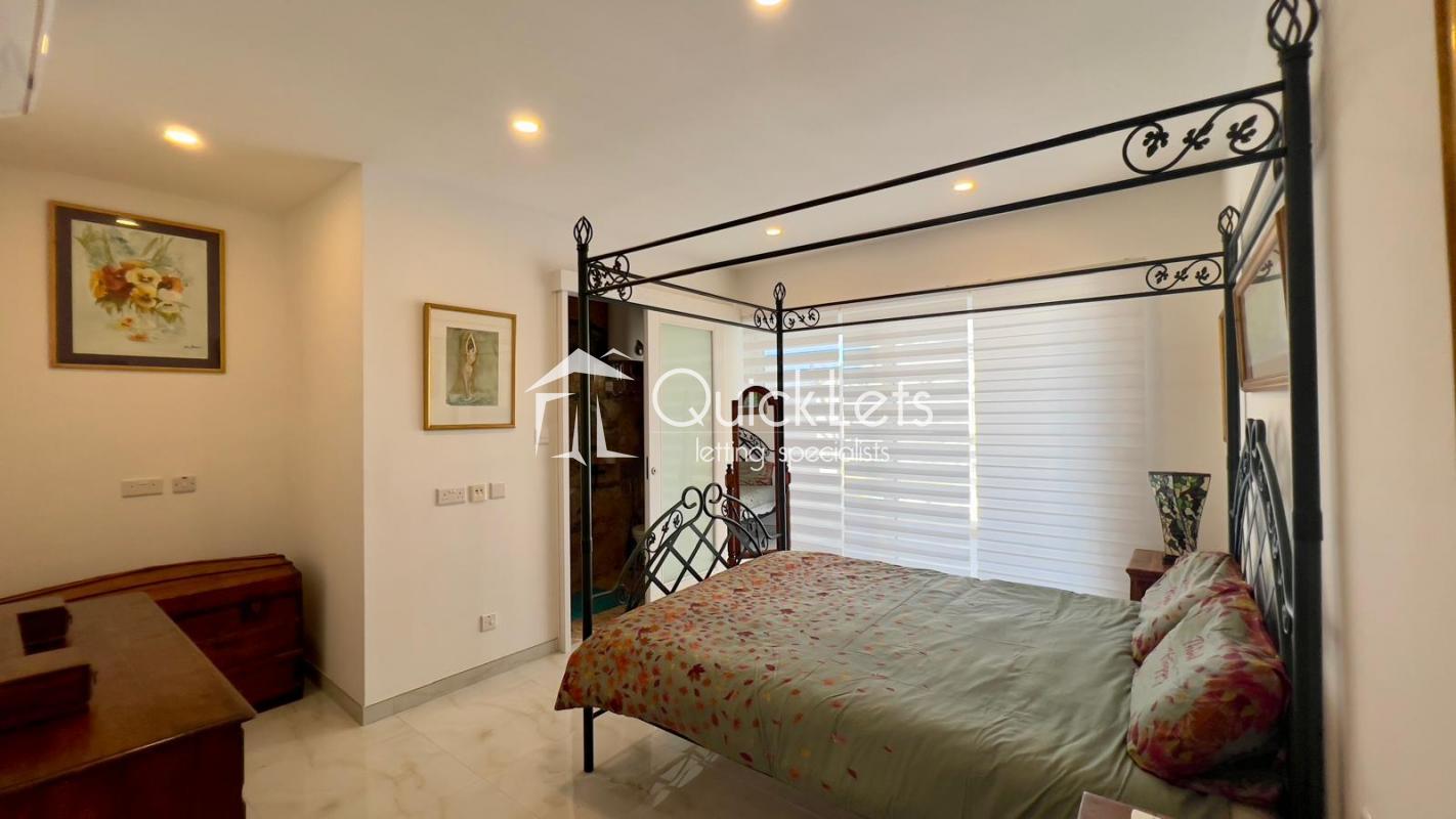 This chic residence boasts three comfortable double bedrooms, each thoughtfully air-conditioned for optimum comfort. The master bedroom includes an en-suite bathroom and a back balcony. The main bathroom, designed with contemporary flair, complements the overall aesthetic. Ample lighting enhances the apartment's ambiance, creating a cozy and stylish atmosphere.