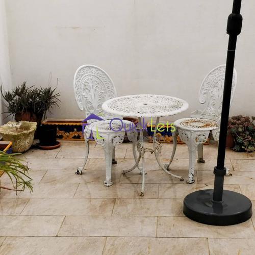 Consisting of a comfortable kitchen, living, dining area, one double bedroom and bathroom (with bath tube), with a spacious back yard to enjoy the summer and wind.
