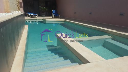 GHAJNSIELEM Gozo: A modern terraced house with a spacious swimming pool situated near amenities and few minutes away from ferry. Layout consists of a first-floor modern furnished kitchen / dining, a sitting room having a functional fireplace leading to a balcony, three bedrooms and two bathrooms. Main bedroom, kitchen and living area are fully air conditioned and on the second-floor ones finds a washroom and roof terrace.