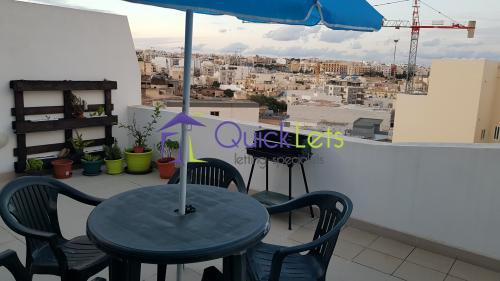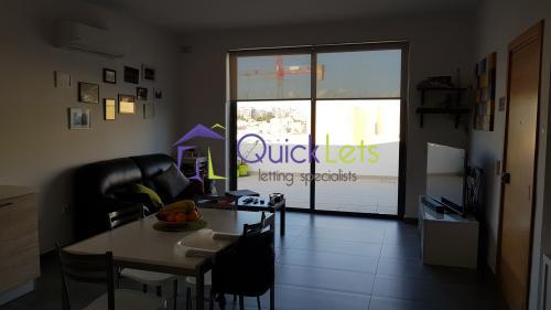 MSIDA - Two-bedroom penthouse in Msida. The penthouse consists of two double bedrooms, a kitchen, a living room, a dining room, and two bathrooms, one ensuite. The penthouse is fully furnished, with a washing machine and an LCD TV. Back balcony and front terrace with open views. The living room and the main bedroom come with an AC, together with all appliances needed, including a pressurised water system. Optional garages are available on the same block at an extra monthly fee!