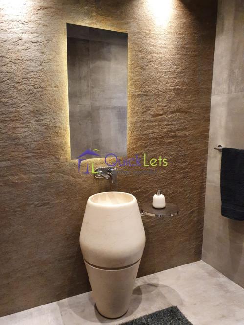 New on the market professionally designed and ultra modern, semi detached villa enjoying beautiful valley views, comprising an open plan kitchen/dining/living leading to the swimming pool, large terrace and BBQ area, guest toilet, four double bedrooms all with ensuite, walk in wardrobe, study area, full roof, terrace, and utility room. The property also has a four car interconnected garage, games room/guest quarter and a lot of storage. The property is fully air conditioned and fully equipped. One of a kind.