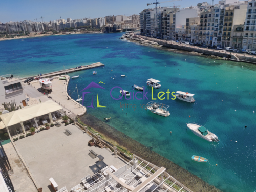 ST JULIAN'S - Found in the heart of St Julian's we have this beautiful seafront apartment located on the fifth floor. This apartment covers an area of 120SQM and the layout comprises of a welcoming open plan living, kitchen and dining area which lead out onto a spacious 20SQM front terrace with lovely views of the sea, and St Julian's. Further into the property we find the main bathroom, two bedrooms (main bedroom with en-suite) and a small back terrace. The property is fully furnished and fully equipped with all modern features and appliances including dishwasher and air conditioning throughout. Apartment also has a garage included in the rent for convenient parking. Amenities and transport links are just a few moments walk away.
