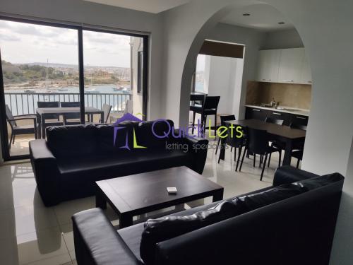 Sliema - We find this Large Sea front apartment comprising of three bedrooms main with en-suite, separate bathroom, a large open plan kitchen/Living/Dinning area leading to